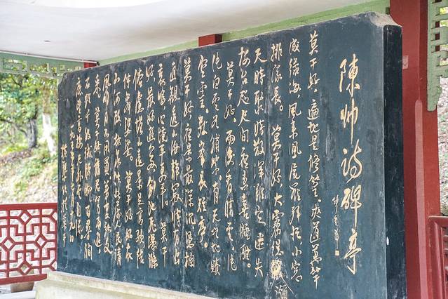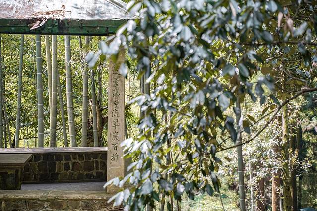 石阶纵横错落,连接着这里复杂的地形。这里也可以算的是山中岔路最多的一块区域,从地图上看,这里有许多可看的点:莫干山开山老祖像、莫干山碑林、陈帅诗碑亭、鹤池......哪怕随意走走邂逅几处,也觉得很有趣。