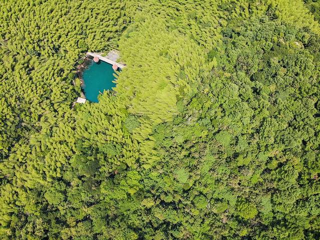这里原本是一个废旧的采石场,当地人在此凿石成潭,又因为莫干山遍山翠竹,著名书法家钱君匋为此题写了“翠”字,镌刻于崖壁上,潭也因此得名。如今在这个硕大的“翠”字边上,也能看到许多书法名家曾留下的笔迹。
