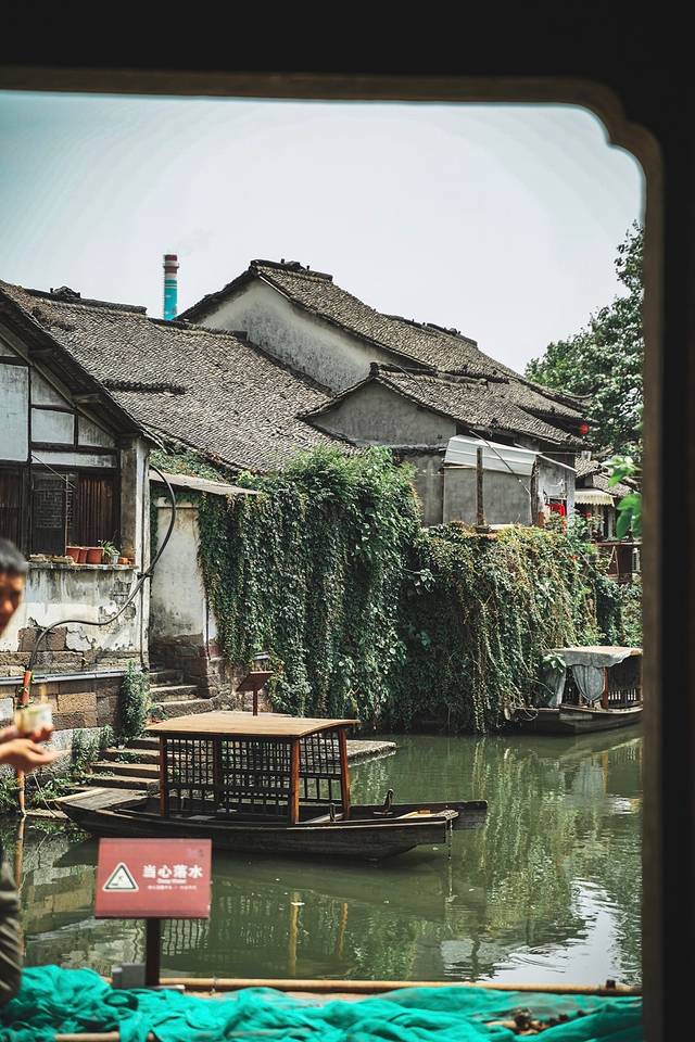 江南水乡的重点是“水”,因此依水而生的船只也成为了乌镇内主要的交通工具。当你穿行在古镇的大街小巷,总能看到来往的船只往返于一座座古桥之中。蜿蜒曲折的河道、岸边古树的垂丝、临河而建的民居、民居外墙上茂盛蓬勃的爬山虎,不知不觉与水中的船、桥上的人融为一体,于是成就了“你在桥上看风景,看风景的人在楼上看”,共同晕染出了这一幅充满江南韵味的水墨画。