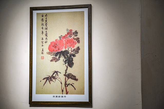 别墅之中,也仍然保留了蒋宋二人许多生活的痕迹:卧室和各种生活场景都进行了还原,墙壁上还能欣赏到宋美龄的画作。