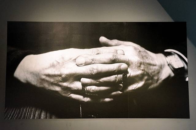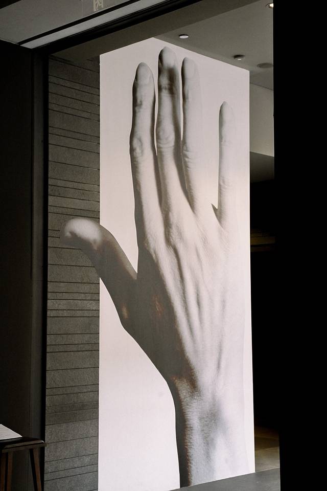 场馆中,有几幅巨型的手部呈现。仿佛置身在一位伟大的思想者面前,在光影交错中沐浴着思想的力量,此时周遭的一切,都变得暗淡、渺小。