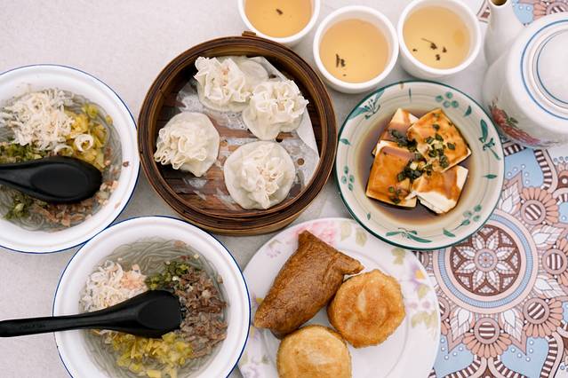 小馄饨、牛肉粉丝汤、笋丁鲜肉烧卖、鲜肉粽、油墩子、小锅面、豆浆油条......选择多到让人拿不定主意。坐下来再叫上一壶免费的茶,等待着古镇在烟火气中,缓缓苏醒。