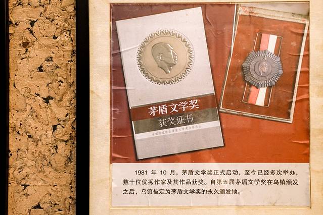 在茅盾先生去世前,他将稿费25万元人民币捐出设立茅盾文学奖,以鼓励当代优秀长篇小说的创作。如今的纪念馆内,也展示了茅盾文学奖近年来的发展历程,乌镇也被定为茅盾文学奖的永久颁发地。