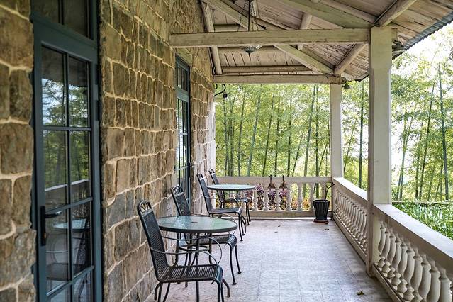 沿台阶登上二楼,可看到莫干山全景,眼前翠绿一片,参差楼台,竹海别墅,尽数铺展于眼前。难怪古人总爱登高远眺,立于山巅举目四眺的心境是完全不同的。当大千世界的悉数美景徐徐展于眼前,我们很难再悲悲戚戚、怨天尤人,仿佛通过这满目苍穹的绿,我们可以抵达繁星。