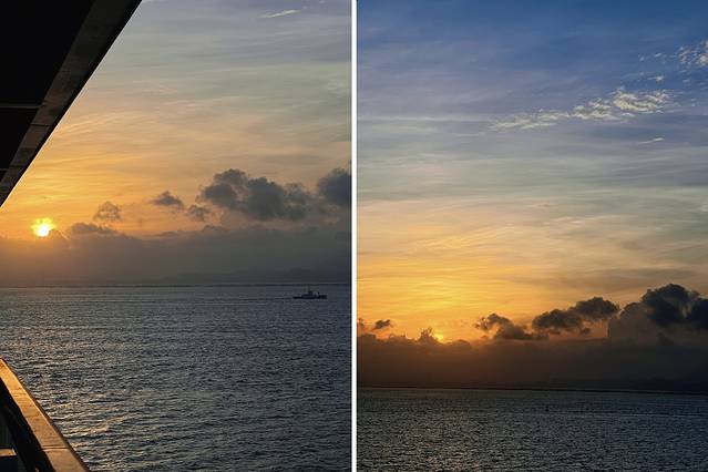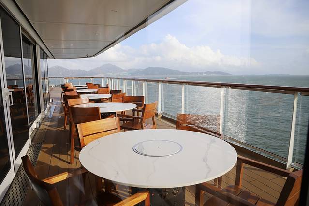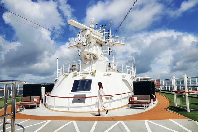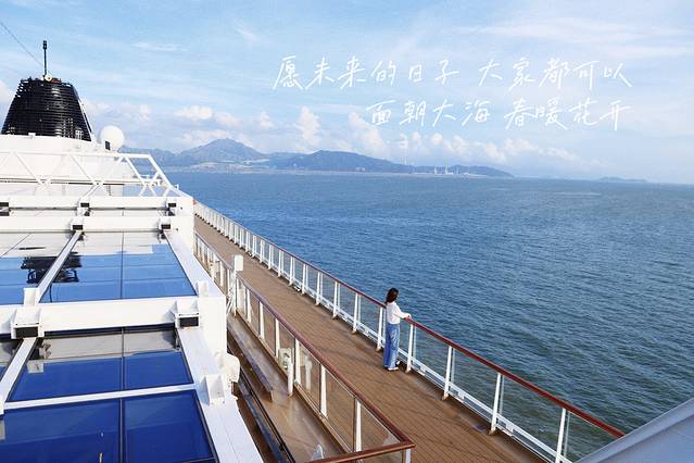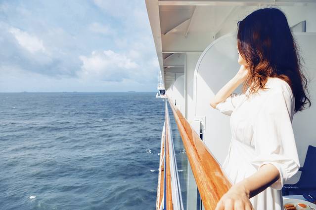 由于游轮所有房间都自带阳台,因此“阳台”就成了非常好的拍照点,毕竟一片蔚蓝就在眼前,这种依靠着栏杆看大海的意境,一定不能缺失你的朋友圈。