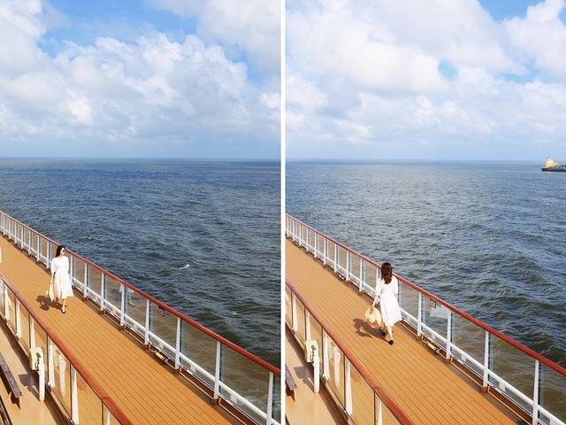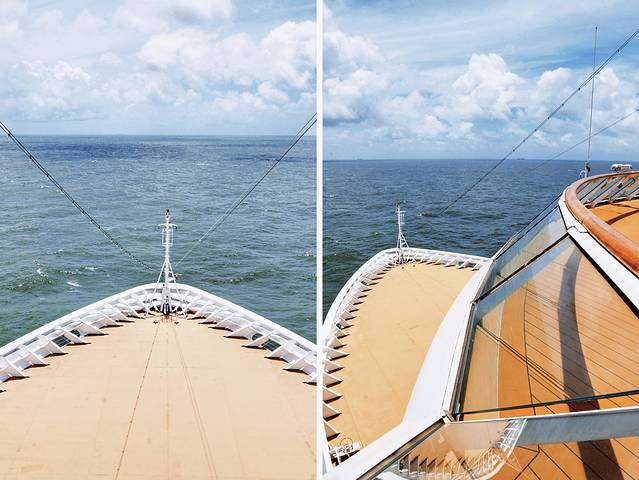 可以拍到尖尖船头,那便是一望无际的海景与船身的结合~