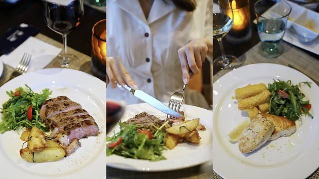 【香煎金枪鱼】鱼肉煎得很好,水嫩多汁,完美地锁住了金枪鱼的汁液,脆皮玉米条口感很特别,还挺好吃。