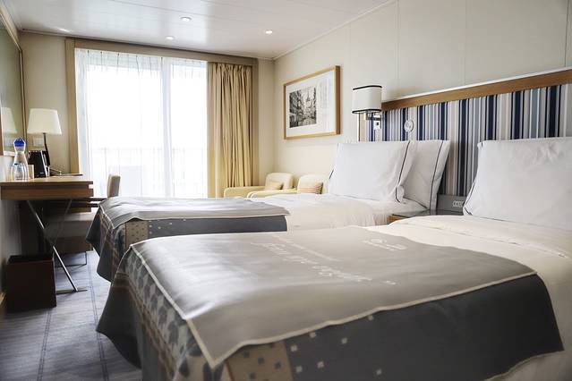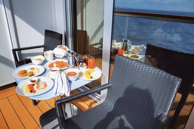 整艘游轮的客房都有阳台,所以不用担心“与大海的距离”。当然,房间有大有小,以及根据楼层的不同,价格也自然有所差异。