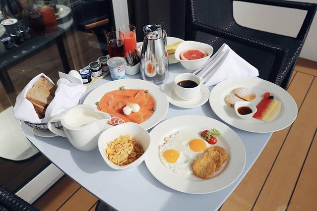 切记切记!不要忘了叫上一桌丰盛的早餐,面对着大海享受美食,想想都美好不是?而且一桌子的美食更很好地增加了“生活感”!