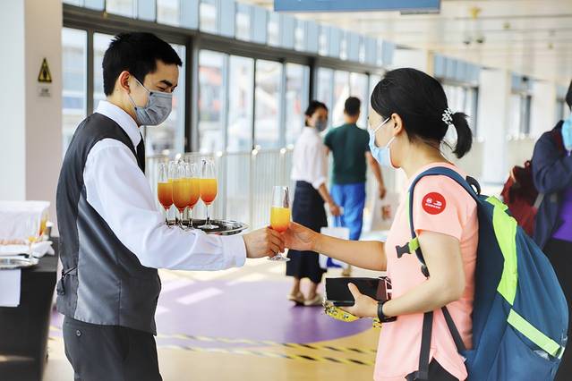 记得每天晚上勾选好送餐服务卡挂到门把手上,第二天船员就会按照你勾选的时间送餐了咯。