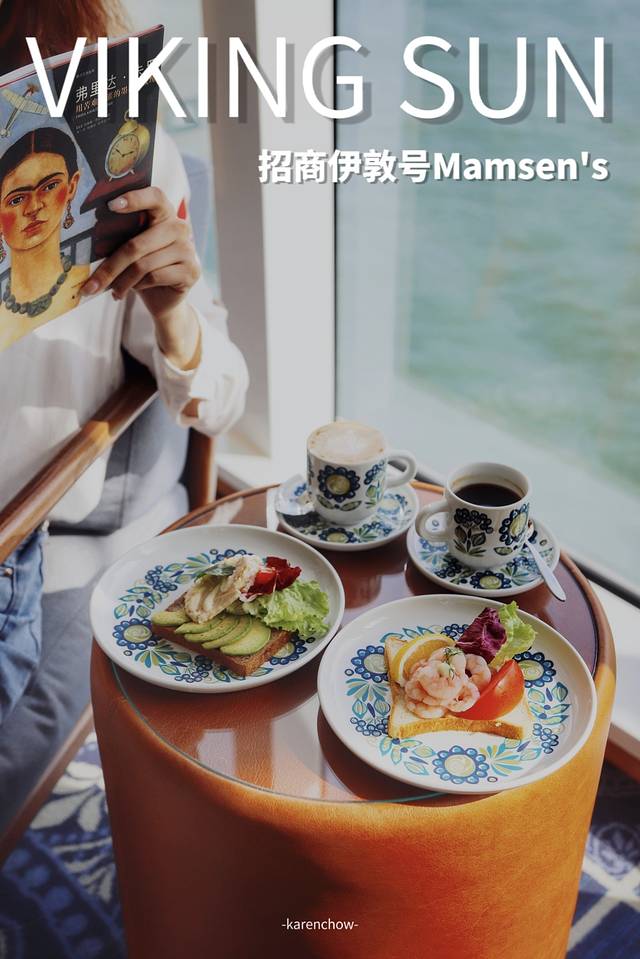 作为一艘拥有北欧纯正血统的游轮,北欧美食必不可少。Mamsen's是以维京游轮董事会主席母亲命名的餐吧,菜单上有她传承下来的经典挪威点心。