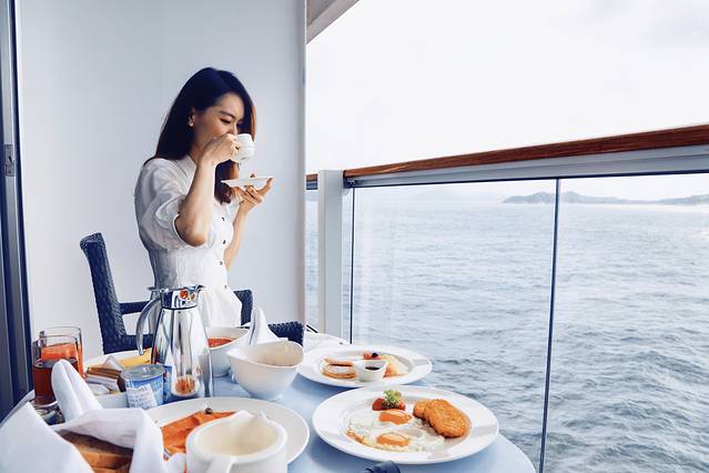 据说晚餐有由罗朗(招商维京饮食文化大使)携手船上厨师团队打造的目的地创意菜,早餐更提供充满古早味的“推车仔”地道广式点心。