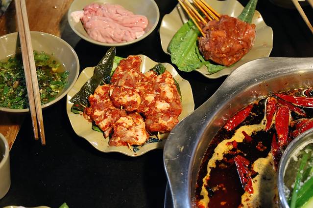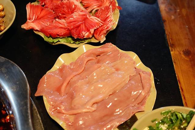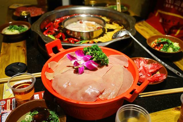 重庆火锅不可缺少的一定是各种“下水”,比如鹅肠、鸭肠、鸭血、脑花、毛肚等都是必点项,还有我第一次吃的腰片和郡花,一个吃起来嫩嫩的,一个吃起来脆脆的,两个都让我种草了!