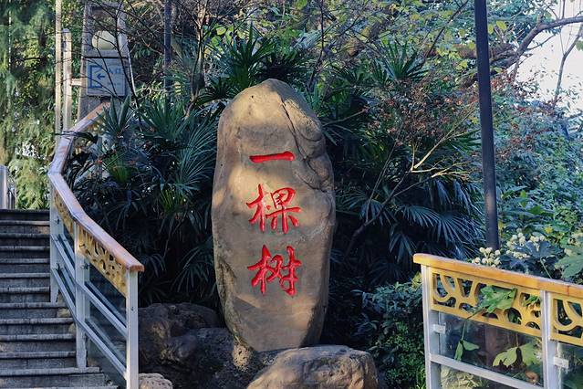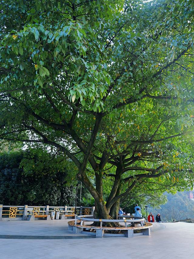 因为景区在南山的半山腰,树立着一座玻璃房观景塔,我原以为这就是它的名字由来,毕竟山上超多树木,没想到真的是因为景区中心有一棵“黄桷树”,而因此得名它还是重庆市的市树。