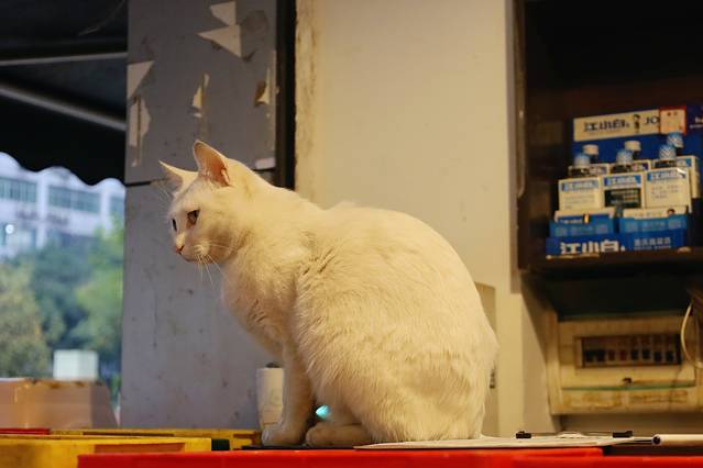 这是老板家的招财猫,特别老实的趴在柜台上面,看着门外过往的路人