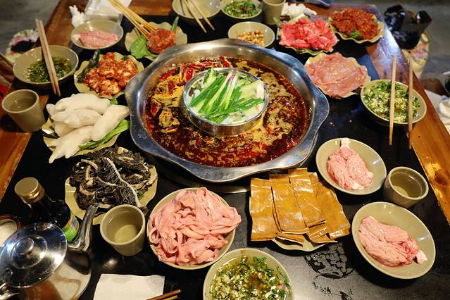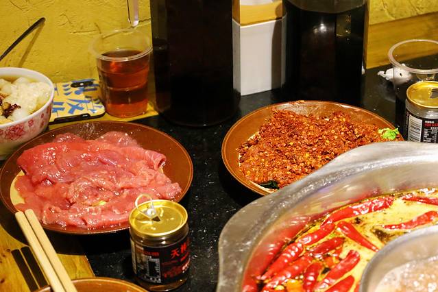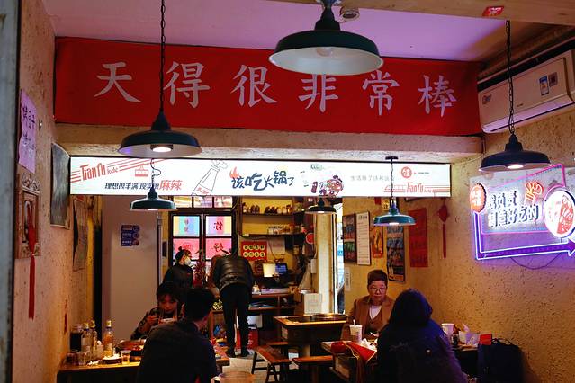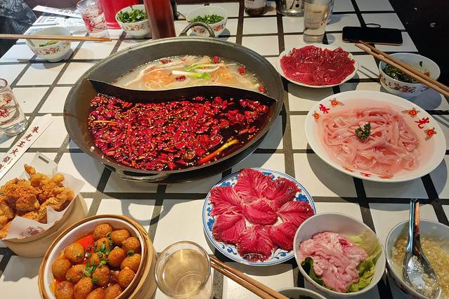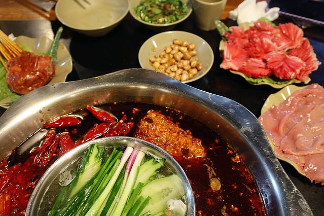 这是我们吃得最远的一家火锅店,出租车开好久才到达一片居民区,因为我们到的很早人家还没开门,于是我们还在小区广场打扑克引一堆路人围观。好像是卡卡的朋友对见的这家火锅店,我也是吃了这家后终于肠胃顶不住了,可以看红红的锅底就知道这真是纯重庆火锅!