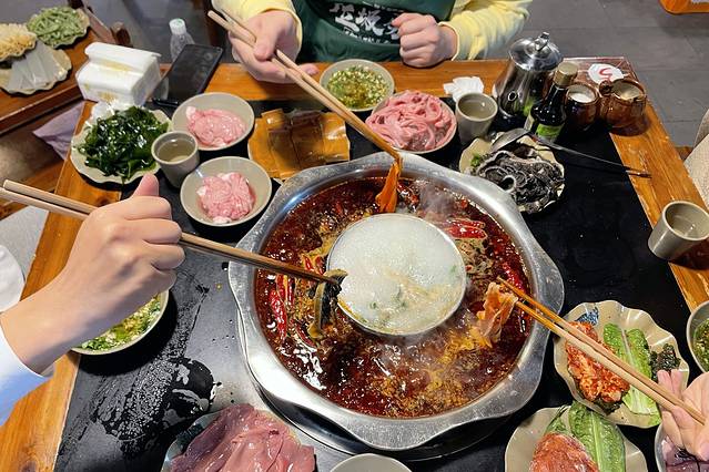 来重庆不吃顿火锅哪行!但每天都吃火锅我的肠胃实属受不了了,不过几天里吃过的几家店,还是喜欢这家有足够的烟火气。虽没有商场的华丽外表,但有周围居民的嘈杂声,就像你坐在家门口吃饭一样,跟着老邻居唠家常,应了那句话“我家楼下的店最好吃”。并且火锅店在解放碑商圈,但它隐藏在居民楼里,也算是闹中取静的好地方!
