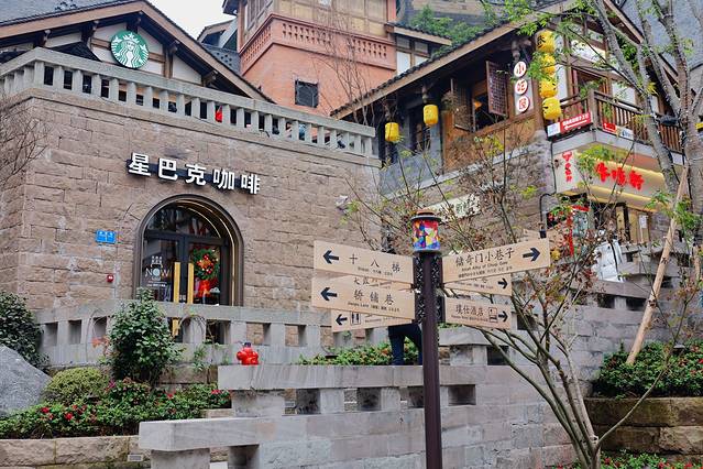 十八梯因为一部电影《从你的全世界路过》而出名,我们想过来的原因完全就是很多照片显示这里还保留着电影中类似的老建筑,可抵达时发现这里已经旧貌换新颜,没有了老旧安静的巷子,取而代之的是商业化的街区,街区内还是随处可见电影的名字,不过听说这里夜晚灯光亮起很美,所以你有幸可以晚上过来瞅瞅。
