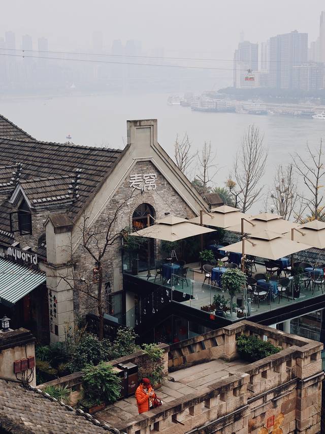 走在青砖上伴随着绿植步步向下,穿梭建筑群之中,那种老建筑的韵味袭面而来,真的是怎么拍都好看,又因面临长江形成独特的开埠文化,午后可以找个临江茶馆,坐在里面惬意欣赏渝中美景!