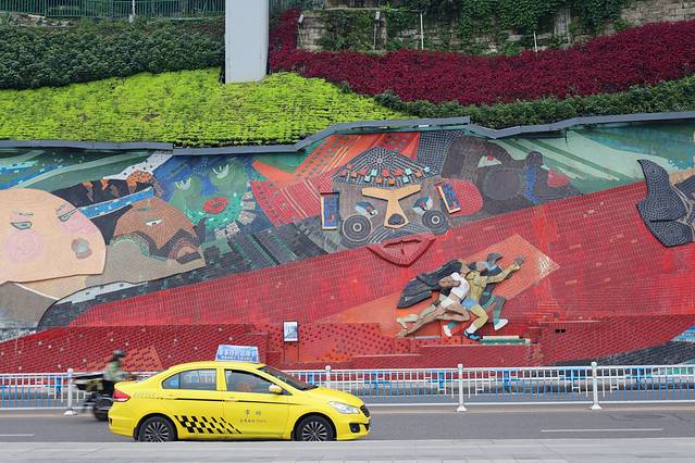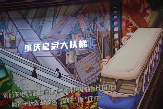卡卡和大哥过来打卡过,但为了我跟婷姐又陪着我俩来打卡,重庆的轨道交通可谓是各有各的特色,但这条地铁2号线很是出名,穿楼而过的“李子坝站”是来了都要去打卡的机位,现在这里也有了宽敞的观景平台,打卡机位也标注详细,周围墙体也拼接成创意画,总体来说只要天晴还蛮有意思的。