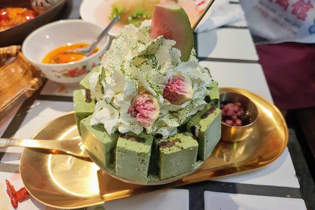 这是我们临走前吃的一家网红火锅店,我们是去观音桥附近购买腊肠和贡菜回去,然后说选择一家火锅店吃吃在回去吧,于是就被这家的冰淇淋甜品种草,相比其他火锅店来说这家就很像我们那面的火锅店,不过他家除了传统食材外,还有很多的小食和网红产品,并且装修相对来说也很适合拍照。