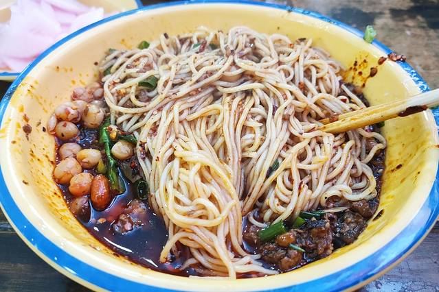能唤醒一天的精神必须是早餐,卡卡和大哥每天早晨都会去吃小面,不出意外我们第一天早晨就吃小面,不得不说“豌杂面”好好吃,一半黄豆一半肉酱拌匀嗦面很爽!后面几天我实在受不了全天吃辣,于是找了酒店附近的小馄饨店,现包现煮连吃两天好暖胃。