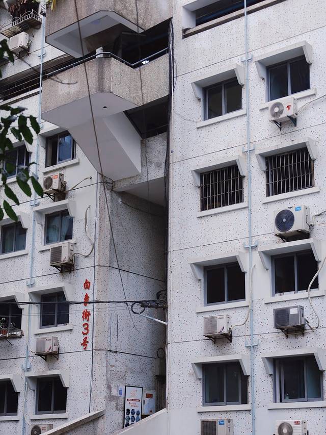 我原以为白象居是个很具体的位置,其实它是一片重庆的老居民区,这里非常能体现出重庆楼房的魔幻。在错综复杂的楼道内,不迷路我真心佩服!我们走着走着就蒙了,原本以为是五楼其实是一层,真的到达一层时,发现自己还在十几楼停着,所以进入楼栋内寻找出口是件有趣的事。