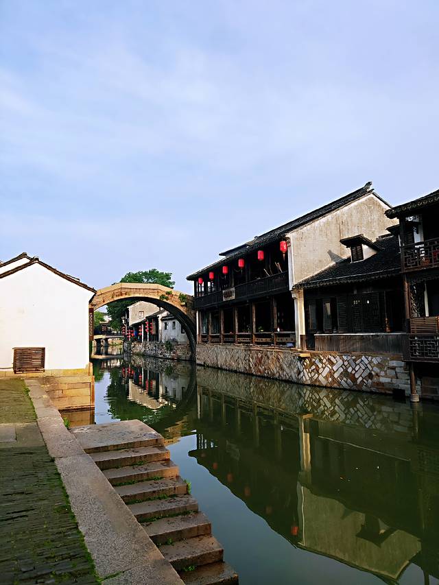 早上太阳刚升起,游客都还在睡梦中,镇里活动的都是本镇的居民:洗衣服、晨跑、广场舞……充满了真实而鲜活的生活气息。沐浴在晨光中,沿河而走,展现在你眼前的就是一幅江南水乡最真实的风貌。什么都不用说,照片就说明了一切。