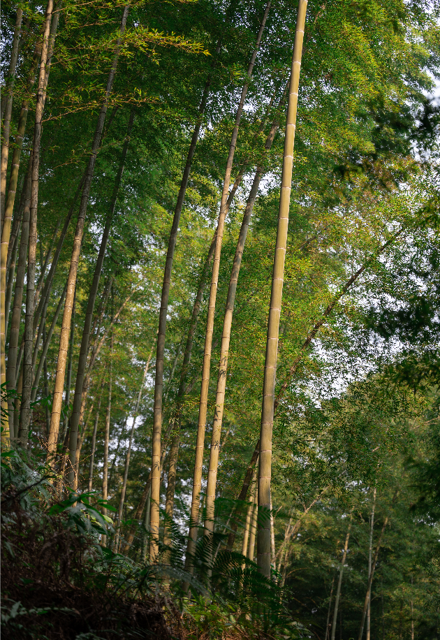 之后再通过另一道山路前往十二叠瀑,首先映入眼帘的就是翠林的大片竹林,忍不住令人深吸一口“呼”~