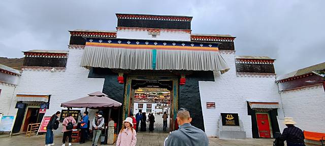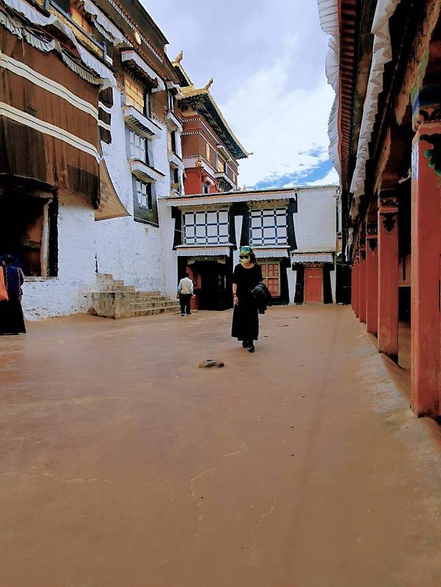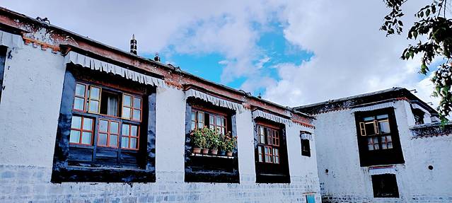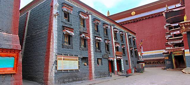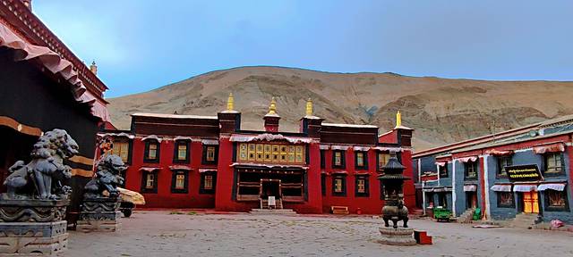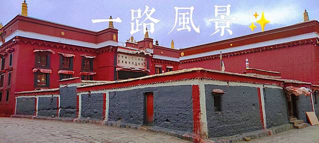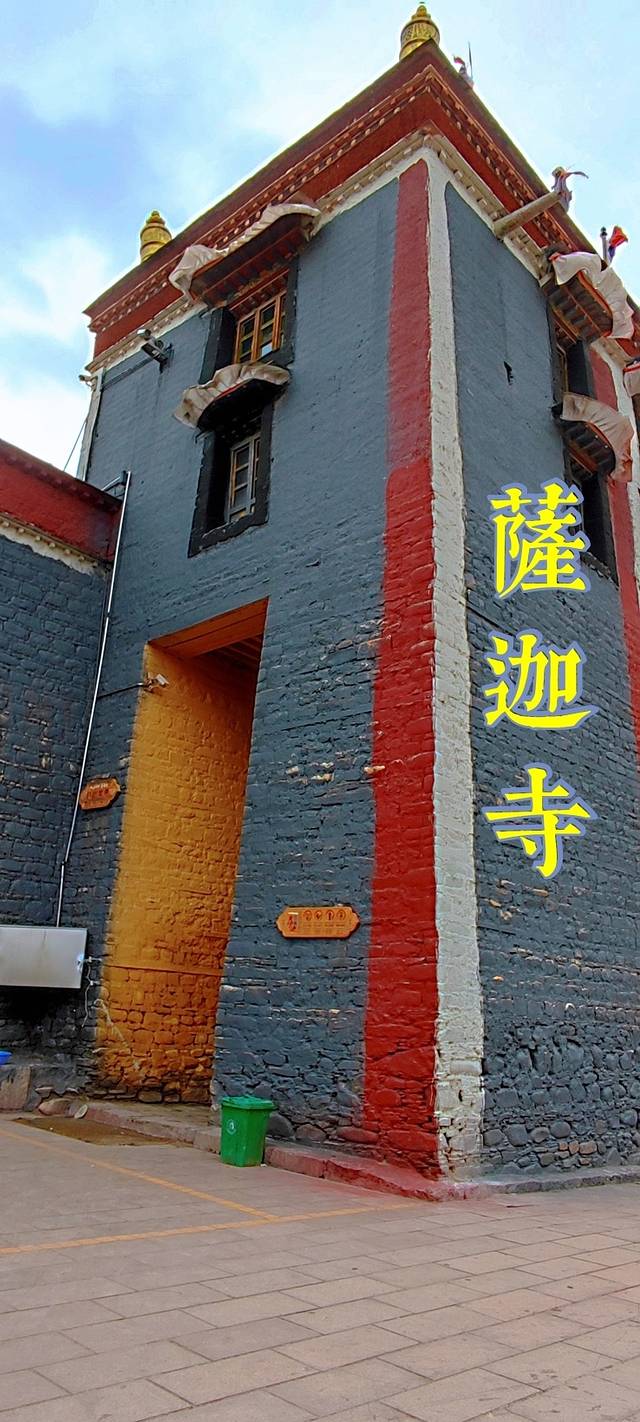 ✨萨迦寺从外围欣赏就觉得它与其他寺院不同,萨迦寺远远看见就像一座城堡,高大厚实的围墙上涂有红白青三色相间的色带,象征文殊菩萨的红色、象征观音菩萨的白色和象征金刚手菩萨的青色,所以萨迦派又俗称“花教”,城堡式的寺庙,隐隐透露出神秘的味道