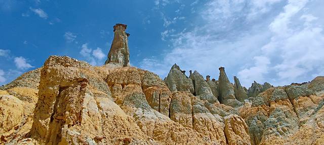 ✨霞义沟土林,被誉为“五彩土林”,与一般的土林不同,霞义沟土林的形状更加神奇美丽,色彩更加丰富,它们有的像蘑菇林、有的像城堡宫殿、有的像并肩作战的卫士,我们印象里对土林的一致色彩是土黄色,但是霞义沟的土林还有银色的、深褐色的,青灰色的,多彩得更像张掖的七彩丹霞景致,目前景区未完善,勿需门票,来阿里的朋友一定不要错过了