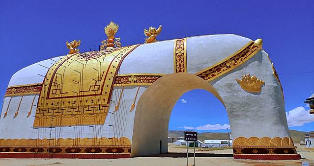✨圣象天门位于班戈县青龙乡5村境内 ,在圣湖纳木措北部恰多朗卡岛上,圣象天门,因这里的湖边有一座形似大象汲水的小山而得名,山上远远的看去纳木错的湖岸线形成了两个完美的弧形,弧形的中间突兀耸立着一块巨石,像极了一头大象