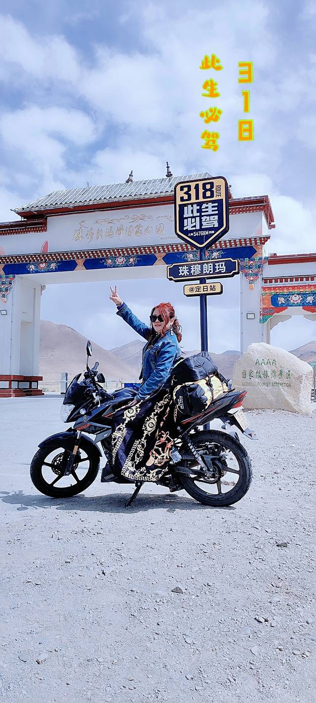 🔶第三天目的地珠峰大本营,清晨七点从定日的酒店出发,驱车行驶约20公里后,到达珠穆朗玛峰国家公园大门口,第一时间必须打卡留影,记录行程的点点滴滴,这些可是值得珍藏的记录,此处成为游客必打卡留影的景点,千万不要错过,我们是刚好遇到一群骑行游阿里的朋友,还特意借了他们的摩托车做拍摄道具,我很喜欢,在去阿里的路上我们也经常遇上这些骑行者,我很佩服他们,帅呆了
