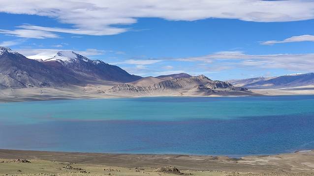✨班公湖位于西藏自治区阿里地区日土县,又名“措木昂拉仁波”,藏语意为“长脖子天鹅”,湖面占地600平方公里,海拔4250米,是一个典型的高海拔湖泊,班公湖之所以被藏族人民称为“长脖子的天鹅”,是因为它的狭长与美丽,从地图上看,班公湖呈东西走向,全长约160公里。因其形状狭长,班公湖不同部分的湖水中含盐量有所不同,其中有三分之一的水域竟然是咸水湖,没有鱼虾且苦涩得无法饮用,而在我国境内的三分之二则是淡水湖,水质洁净、水草丰盛、鱼虾成群,因此有“最美好的班公湖全留给了中国”一说,原来班公湖既是咸水湖又是淡水湖,是不是大自然很神奇呢