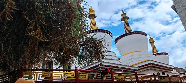✨寺内有多棵百年古树,互叶醉鱼草,有的已有4百多年历史,据说摸树身有趋吉避凶,逢凶化吉之说,从树身光滑程度可见,游客进入寺内一定会前来抚摸古树,希望带来好运,记得如果到阿里途经这里来参观朝拜一下