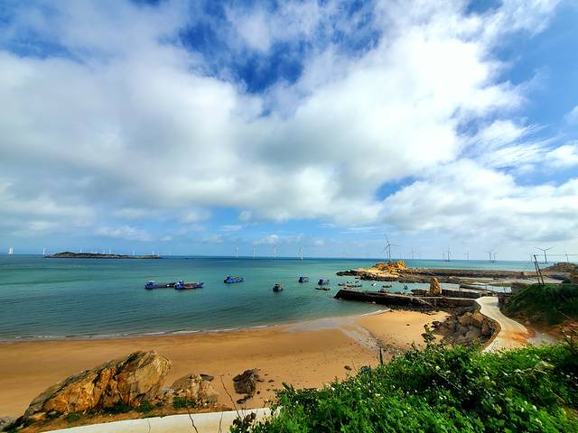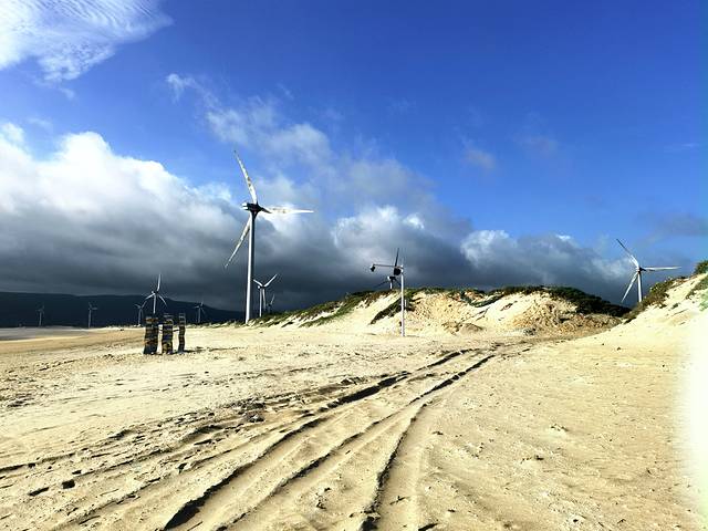长江澳(非全景),一波波汹涌而来的海浪与竖立在广阔沙滩的众多风车确实非常协调,但由于多云,连续两天傍晚都没蹲到日落,也很遗憾,总之平潭旅行,长江澳是必来的!