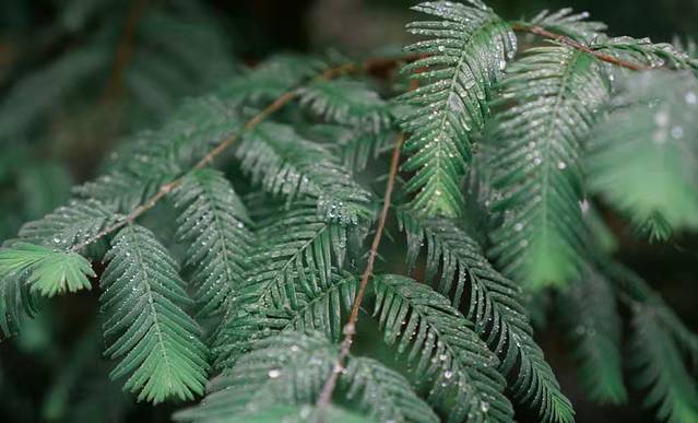 杉树上的露珠还未滴落,我在想这样的露水用来泡茶是不是别有一番风味