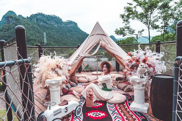 谁能拒绝一场精致的露营呢,狐巴巴里有很多帐篷,现成的露营吸引了小姐姐们排队打卡。