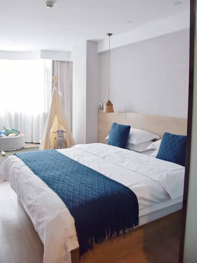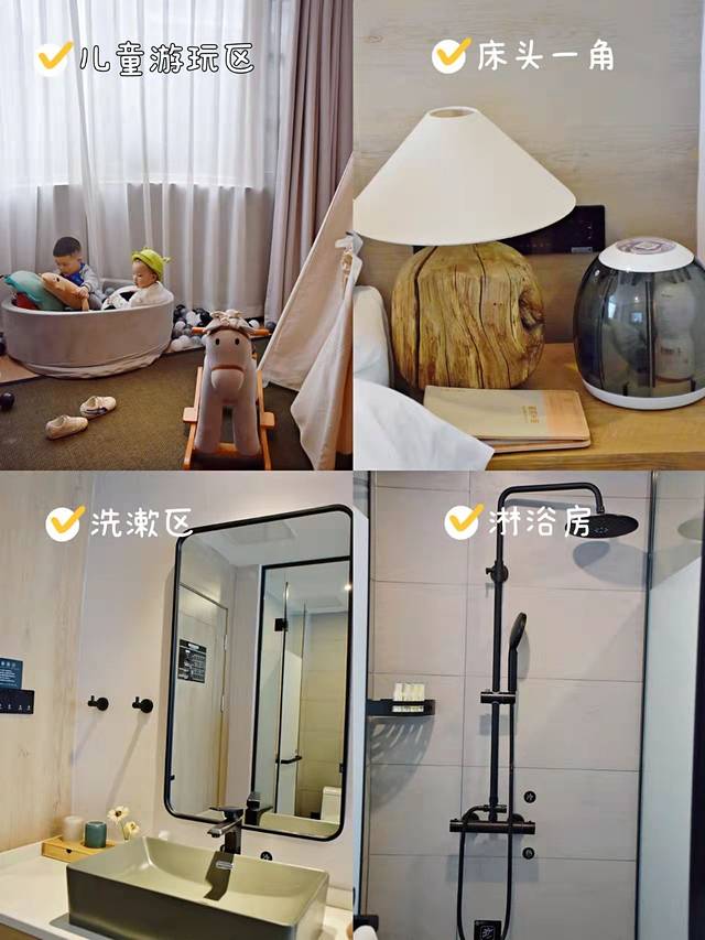 我们预订的亲子房,房间内竟然有孩子的玩耍区域:玩具海洋球、绘本、摇摇马、玩偶、绘本,孩子尽情玩耍,留给大人片刻宁静。