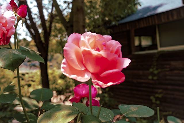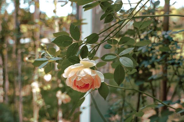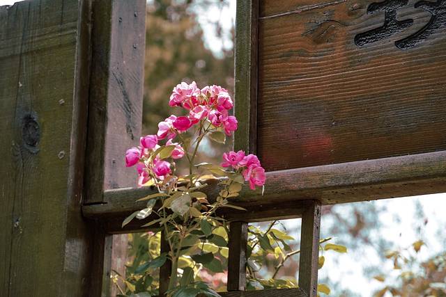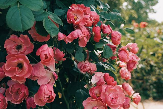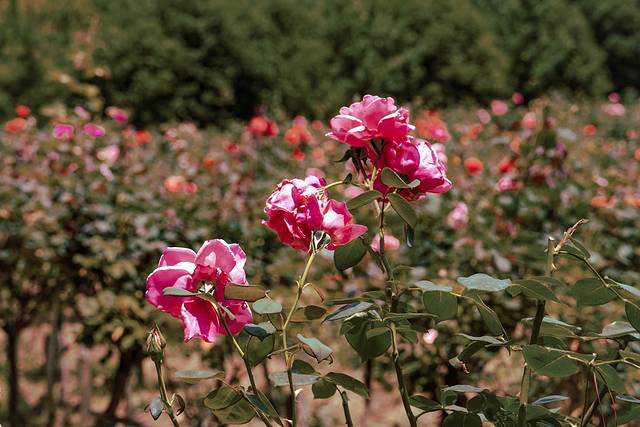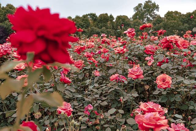 我很喜欢的一个区域,各种色彩和大小的爬墙玫瑰,从木栅栏盘绕向上,很有法式院子的感觉。相对来说也不那么晒,可以闻着花香徒步~