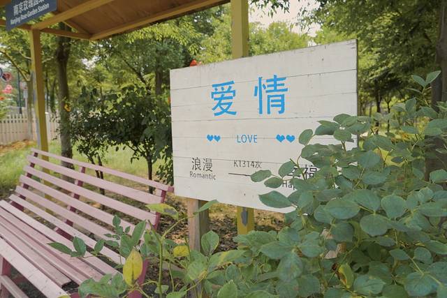 这条连接爱情隧道和萌宠乐园的幸福小路很有意思,地方印着大朵的玫瑰花,路牌是各种有趣的爱情宣言,路边的景观椅子也很适合拍照~