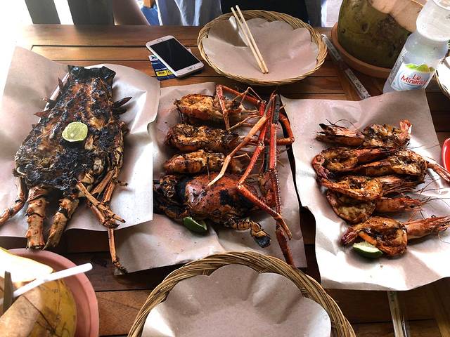 一觉睡到自然醒,中午路边打出租车到 金巴兰 海鲜市场。市场里买好海鲜出来对面就是几家小餐馆可以加工制作,加工费也很便宜一公斤才5块加工费,还送各种沾料搭配烧烤吃!比旁边 金巴兰 海滩上的BBQ划算多了!吃完后Uber去库塔的家乐福,看看咖啡,护肤品,工艺品,买了好多水果回酒店吃!