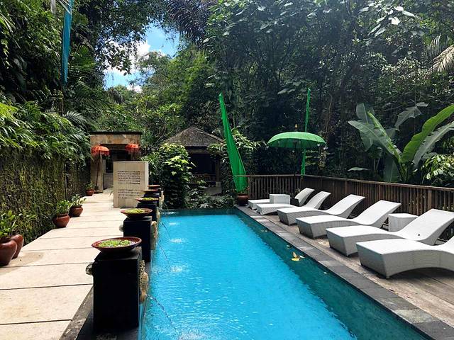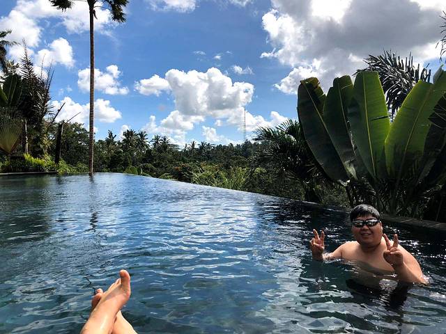 收拾东西退房 出发乌布 包车司机询问了我们一路的需求后,我临时决定去期待已久的小瀑布 但是人是真的很多,并且并不很壮观什么的。所以看了一眼就回酒店了。到达酒店是下午两三点 在酒店的无边泳池玩了一下午 晚上定的酒店的Spa,约到房间来服务,特别舒服!晚上听着溪流潺潺入睡。午饭晚饭酒店餐厅搞定。