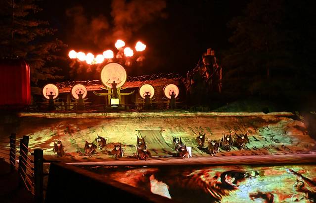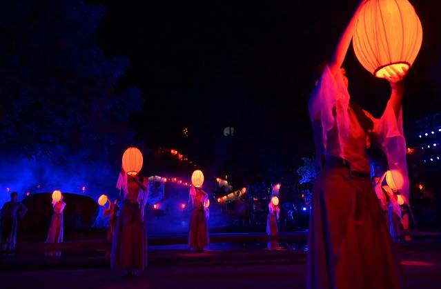 在穿越丛林秘境之后,就听到宛转的巴山民歌声娓娓道来,第六幕《红叶牧歌》也在此徐徐展开,穿着蓑衣的山民一边唱着山歌一边赶着水牛,这样的农耕画面让我想到了在农村的生活,对生活充满了期待和惬意~