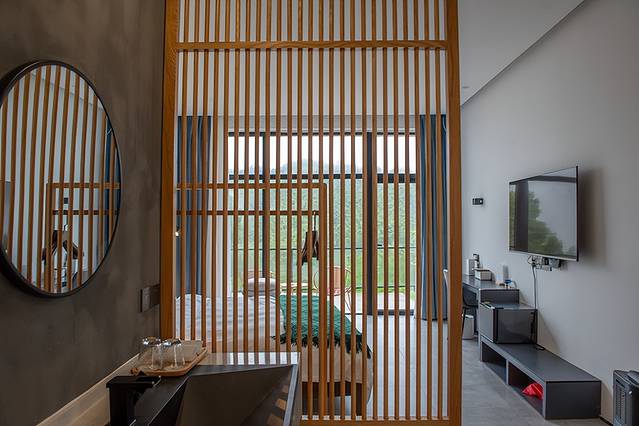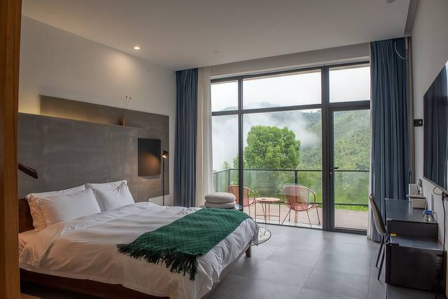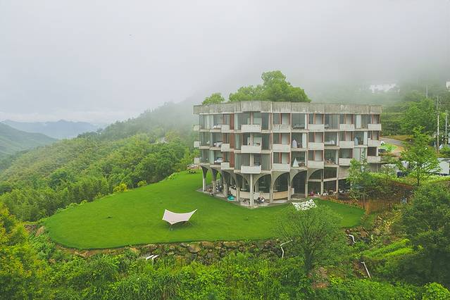 尤其是有一个非常出彩的蓝色泳池和几幢特别的建筑,坐拥整片山林竹海,环境一流。