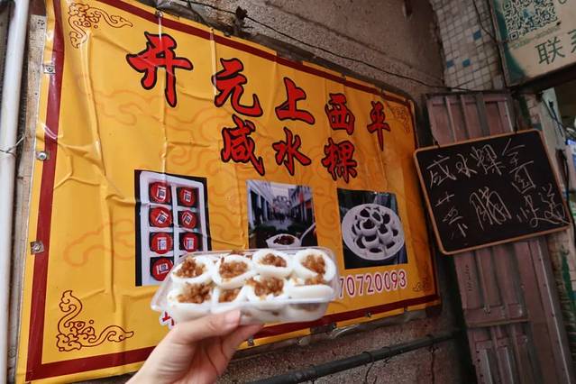 这就是典型的小吃嘛!我们点的是双拼,甜辣和咸味。咸水粿里就是把蒸米浆做成小小的碗状,里面放了萝卜干这样的菜脯。我其实不太喜欢吃,因为我不喜欢米食。但排队的人很多,也有很多本地人来买,大家可以试试。
