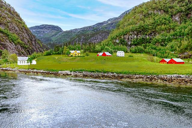 转过弯,峡湾不再平静水面起了涟漪,我们来到了一片世外桃源。梦中的田园是不是也就这样了?或者梦里都不敢想的这么美好。