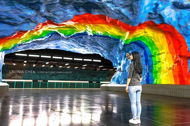 如果你问我,瑞典最好玩儿的地方是哪儿?我一定会告诉你,地铁(没说公共卫生间已经很不错了哈哈哈,在瑞典真的无限可能)。地铁对于瑞典人来说更多的是交通工具,但对于游客来说,艺术价值远大于交通功能。