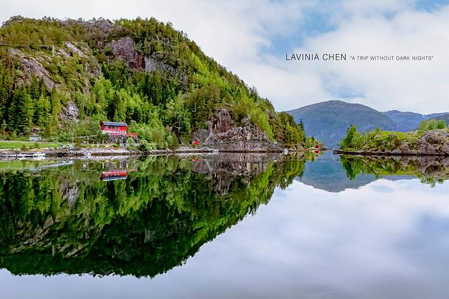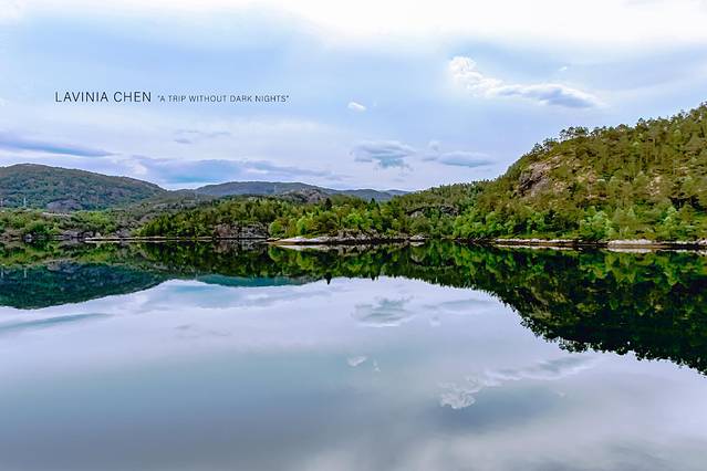 游客中心的小姐姐果真说对了,这趟游船真的很好玩儿,景色和昨天的完全不同。没有高山,水面很平静,今天的真的是镜子,我很喜欢这几张照片,天上和峡湾里的真的是轴对称。