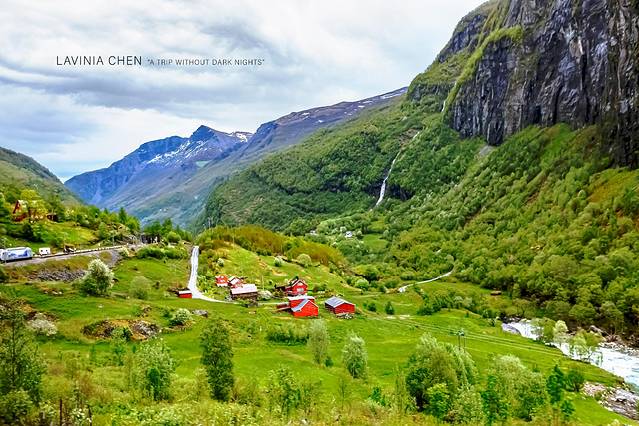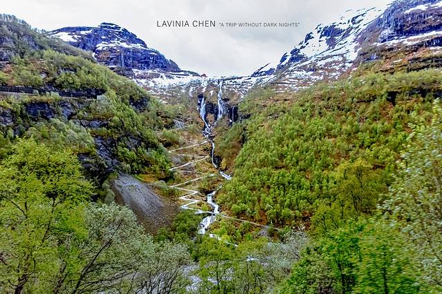 回到火车上再启程,我们就来到了艾于兰河谷,这是一条高山间的低谷,两侧高山的融雪化成瀑布流到低谷里形成河流。这里是我觉得这段火车旅行里最精华的部分,这很挪威。